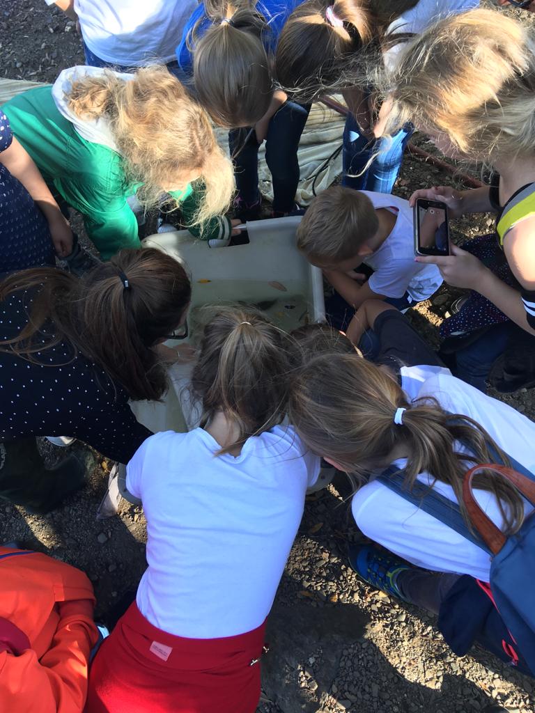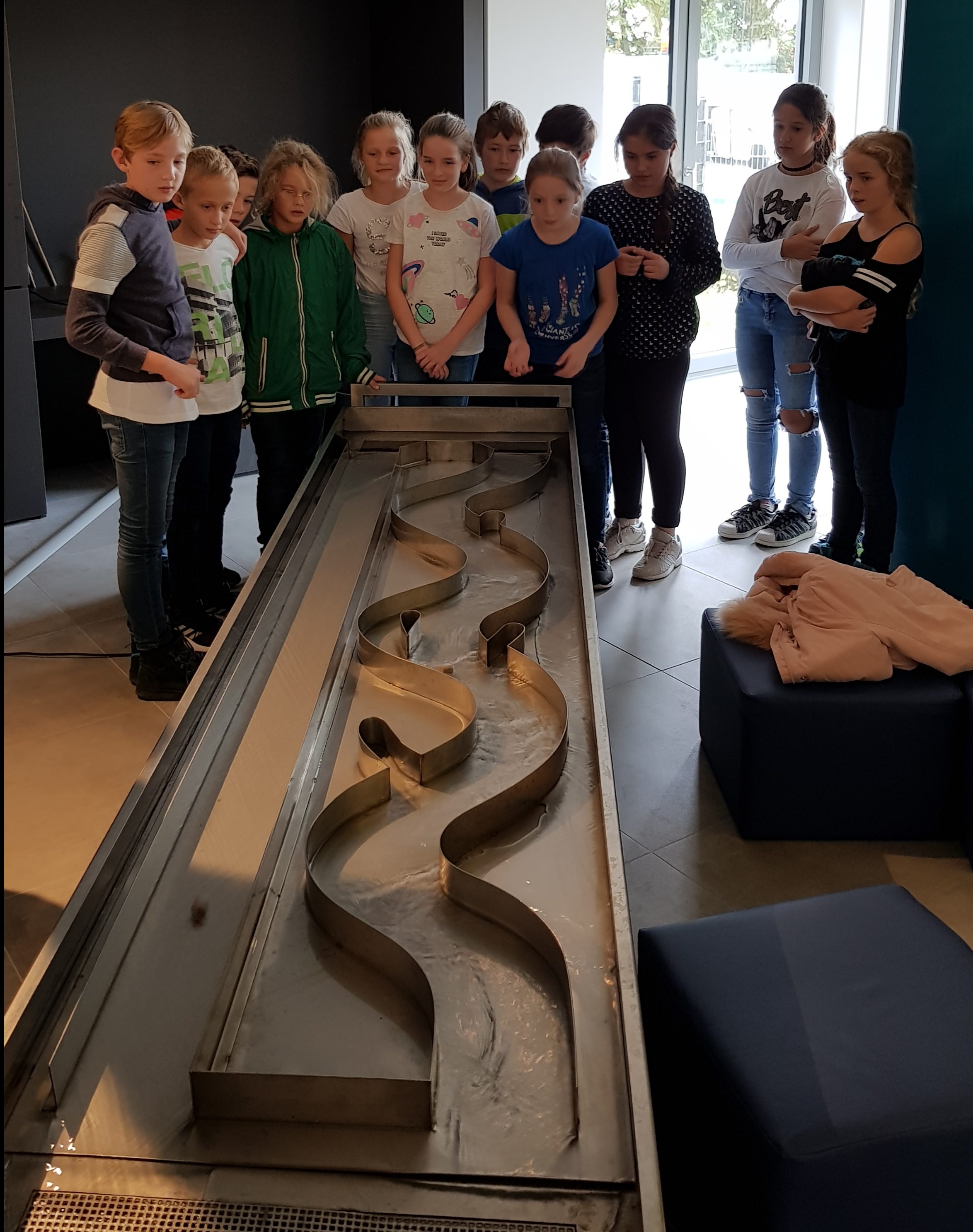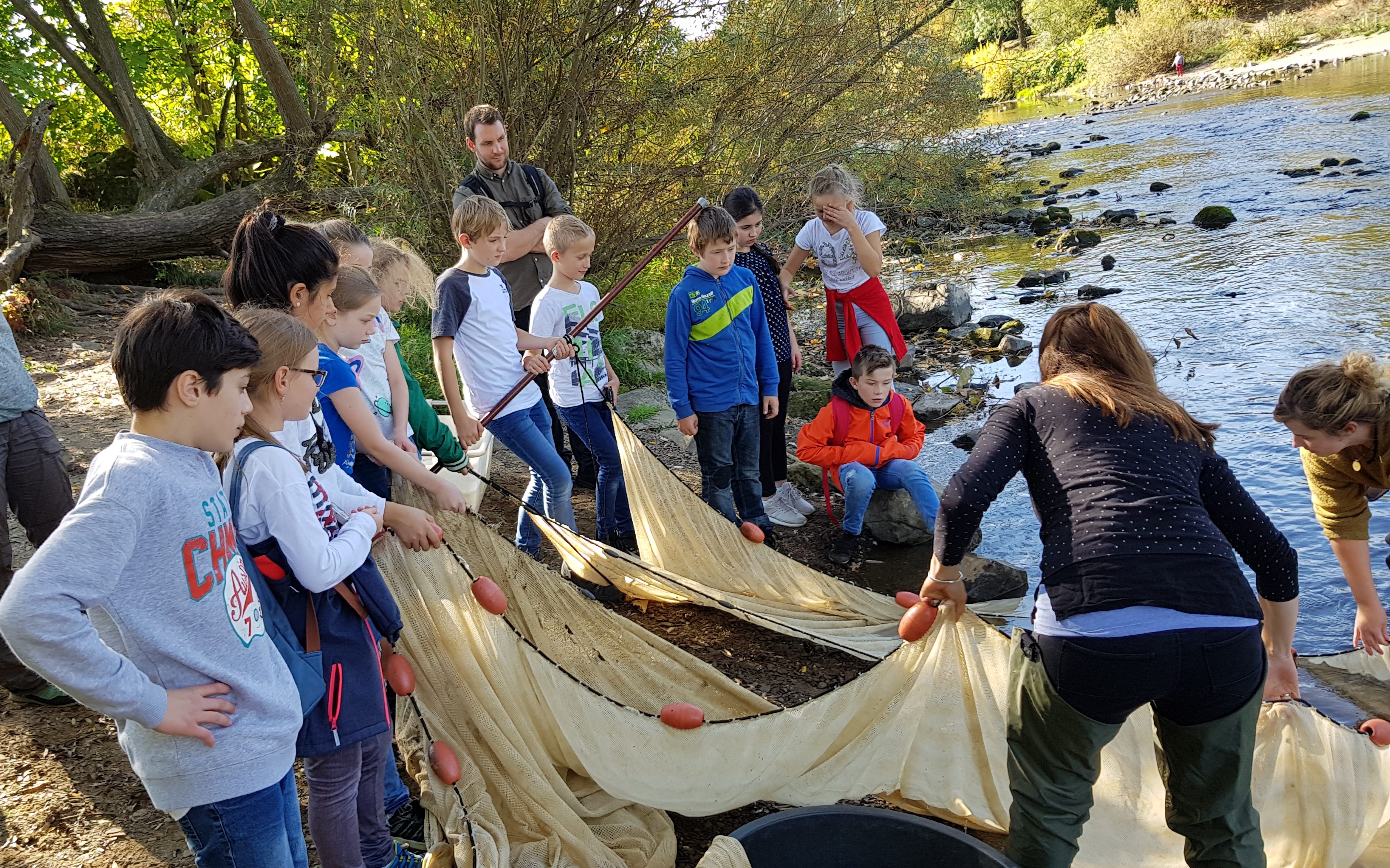 Am letzten Tag vor den Herbstferien begaben sich 13 neue Lachs- AGler bei tollem Wetter auf den Weg nach Siegburg. Nach einer Führung im Wissenshaus Wanderfische und einer kleinen Stärkung ging es dann per Fußmarsch zum Aufstiegsfest ans Buisdorfer Wehr. Aufgrund des niedrigen Wasserstandes der Sieg hatten es zwar leider bis dato keine Lachse geschafft, als Rückkehrer bis dort hin aufzusteigen, aber wir konnten viele andere Fischarten aus nächster Nähe in der Reuse beobachten. Anschließend bekamen wir in feierlichem Rahmen unsere Patenschaftsurkunde überreicht. Die Lachs- AG freut sich bereits jetzt auf ihren nächsten Auswärtstermin im „internationalen Jahr der Lachse 2019“.